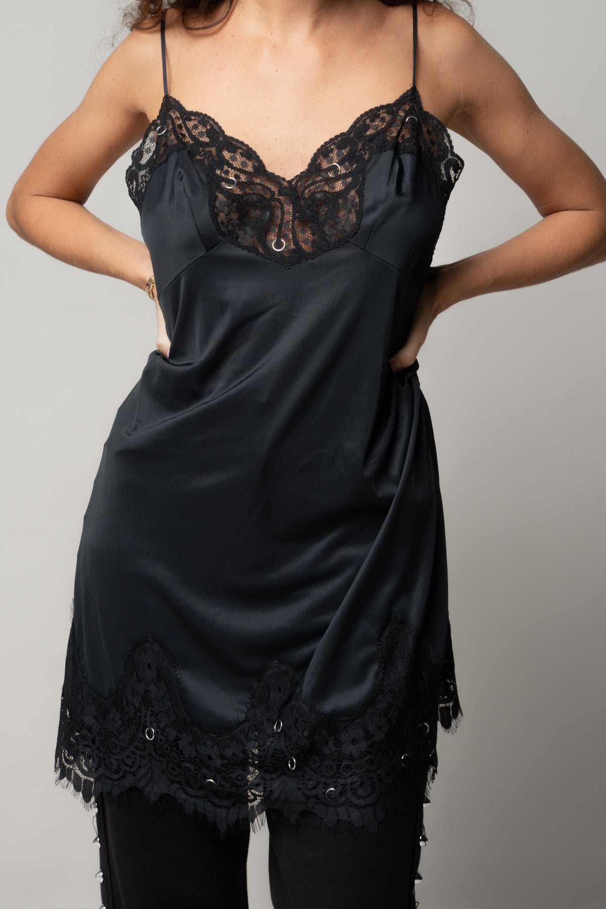 These Re-Loved slips are true vintage pieces, each one hand-customized with laces and piercing and completely unique.
