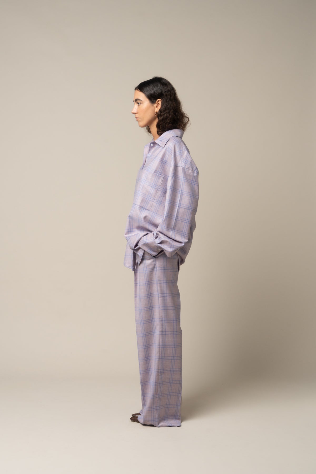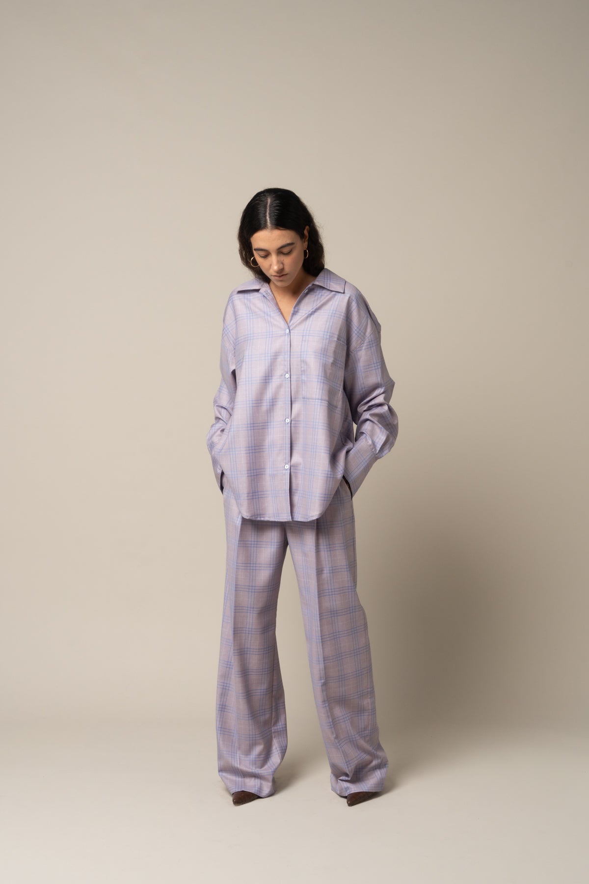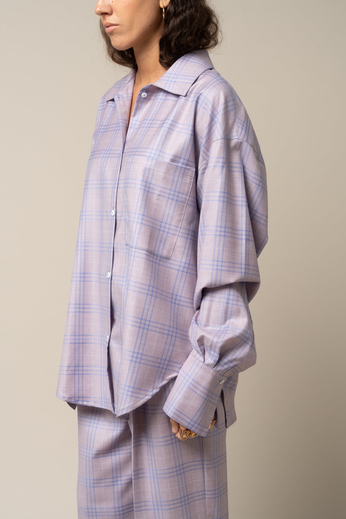 Pink check wool over shirt. Tailor made in Italy